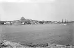 Najaden under lättning i Marstrand. I bakgrunden syns bebyggelse.