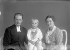 Enligt text skriven på glasplåten: "Släktingar i Tun 1920." Enligt notering: "J.J.:s kusin med fru och son som blev präst, Tun 1920".