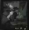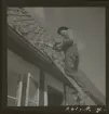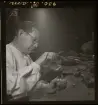 1950. Frankrike. Kvinna sitter och tillverkar stråhattar