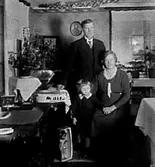 Två kvinnor sitter på var sin sida om ett litet bord framför ett fönster, okänd plats och årtal. En av kvinnorna (till höger?) är Hilda Olsson (1887-1973, 1923 gift Sandberg). Hon arbetade som husa hos Håkan Jönsson som var rektor på Stretereds skolhem. Foto från Sagered-album.