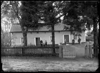 Kyrkan med smidesgrind i muren, från V Roasjö