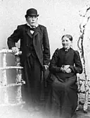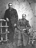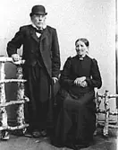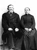 Ett av många Älgaråsfoton ur Isaac Andersons produktion. Reprofotograf: Gunnar Berggren. Anders Olsson, Kroken f. 1814, d. 1907. Stina Olsson, Kroken f. 1832, d. 1918. Anders köpte gården av Stinas föräldrar 1867. Han hade såg och kvarn vid bäcken. Stina var en skicklig väverska och lärde andra väva dräll och lakansväv. Med oxar körde man in till Mariestad, där produkterna såldes. Bl.a. Lasarettet köpte gärna Stinas väv, för den var bra och bred.