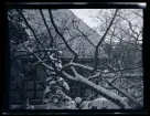 En man till häst, en flicka på skidor och en flicka med en sparkstötting på tomten till familjen Morthensens villa Solveden, Djursholm.