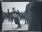 Pojke åker skidor nedför en liten backe på tomten till Villa Solveden, Djursholm.