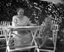 Sällskap runt trädgårdsbord vid Edets kvarn