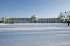 Steneby. Friluftsgården. Vinterbild med husvagnar.