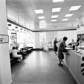 Statens Järnvägar, SJ resebyråkiosken, Göteborgs centralstation. Stora garaget. Café skylt