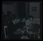 Sitter runt matsalsbordet. Tidsomfånget är 1900 - 1940