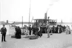 Enligt Bengt Lundins noteringar: "Lyckorna från Ljungholmen. SS Kung Rane med segelbåtar vid ångbåtsbryggan".