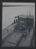 Text på baksida av fotot "Överhängande lastarm vid karibiska havets strand" Cuba 1909-1911