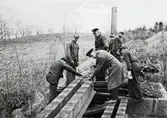 Bilden tagen sommaren 1903, dvs ett drygt halvår innan SAJ startade trafiken. SAJ - rallarna vid Svarvarebacken, Ljungstorp sommaren 1903 med loket F.U. von Essen, köpt 1902 som byggnadslok från Hjo-Stenstorps Järnvägsaktiebolag. Loket byggdes 1875 av Kristinehamns mekaniska verkstad, såldes av SAJ 1905 till DONJ och hamnade senare hos Sulfit AB Ljusnan innan det skrotades 1930.