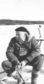 Laxfiskare vid Ljusne, Hälsingland. Ljusnans vatten i bakgrunden