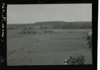 507 B Ultuna. Kärvar på en åker framför byggnad.