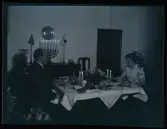 Sitter runt matsalsbordet. Tidsomfånget är 1900 - 1940