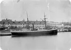 Kryssaren passerar under Sandöbron, Ångermanland.