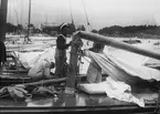 Evert Taube med luta sittande i R10:an Westa II.