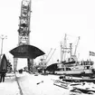 Lyft av akterstäv från verkstadskaj M/s Garm