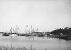 Arkösund blev tidigt en viktig uthamn vid Bråvikens mynning. Här hindrade inte isen i samma utsträckning som längre in i viken och platsen var viktig för godstransporter till och från främst Norrköping. Efter att järnvägen öppnat 1895 ökade nyttotrafiken i ytterligare grad men gav även upphov till den villabadort samhället utvecklades till. Bilden från omkring 1905 visar järnvägspiren vid sidan av patricervillor från tiden.