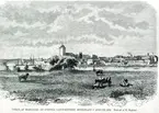 "Utsigt af Mariestad, de svenska landtmännens mötesplats i augusti 1874. Tecknad af R. Haglund." Ur Ny Illustrerad Tidning, 1874.