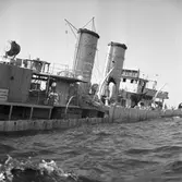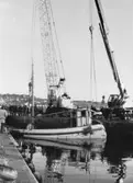 Bilden visar bärgning av ett fartyg efter Horsfjärdskatastrophen med hjälp att två bärgningspontoner.