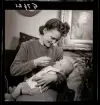 En barnsköterska med ett spädbarn.