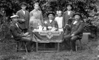 Foto av när Gerd Sjölander (märkt med ett x) har födelsedagsfest (enligt text skriven i albumet). Text på baksidan: "Till Inga från Gärd".