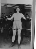 Tungviktsboxare Henry Nicklasson, bosatt i Mölndal, i boxningsmatch mot okänd motståndare. HN tillhörde Mölndals Boxningsklubb, och senare Redbergslids.