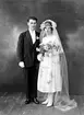 Brudparet Pettersson. Bruden, född Ester Faxe, Svärdskullen, Daretorp.
