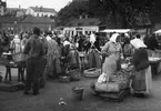 Gävleutställningen 1946 vid Gävletravet. Förberedelser innan paraden till utställningen