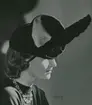 "Blanche Smione". Modell i hatt med kulle, fjäder.