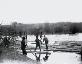 Spelflotte. Parti från Lillväster, Ljusnana biflod, 1905. Fotografen erhöll med fotografiet fotografiskt stipendium från Svenska Turistföreningen 1905.