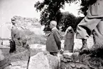 Okänd man och professor Rutger Sernander på Upplands fornminnesförenings vårutflykt, Skederids eller Länna socken