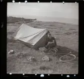 En man går på en spång över en myr. Vägen Ratukkavaara - Snuksajärvi. 17 augusti 1943