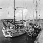 Brevbärare på väg ut på postturen, med post och tidningar, 1950-talet.