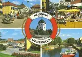 Vykort, Hälsning från Skara. Bostadshus, Skara domkyrka i bakgrunden. Vykortet skickades den 14/2 1913 ( eller 1915 ?) till Wilhelmina Lagerholm. Personen som skickade vykortet bodde i huset i förgrunden. Huset revs efter 1970, det hade adress Trädgårdsgatan 4. Fotot är taget från ungefär mellan Kråks herrgård och Brogården (veterinärmuseet).