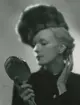 Modell i hög hatt, utan brätte. Draperad sammet.