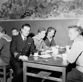 Skulpturen Flygarmonumentet av konstnär Carl Milles. I bakgrunden kvarteret Fältöversten och i fonden skymtar kvarteret Högvakten.