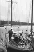 Havskryssaren HAVSÖRNEN I med varvspersonal på Holms Yachtvarv i Gamleby år 1938.