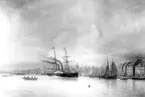 Gustavsbergs hamn år 1873. På fotot ses hjulångaren Wermdö (första båten i Gustavsbergsflottan), ångbåten Gustafsberg I samt en brigg av Figeholm.