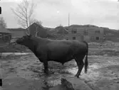 "Tjur och husbygge. Husbygge på Karlslund 1922".