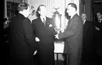 Skara. Bordtennis. Engelska damer 27/11 1952 Nils-Erik Nilsson, Skara Bordtennisklubb överlämnar minnesgåvor.