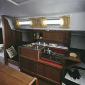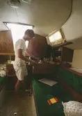 Konstruktören Peter Norlin i pentryt på Albin 78 Cirrus