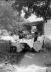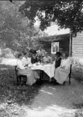 Kaffebjudning i trädgård, sannolikt Dalarna