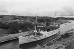 Bilden visar en passerande handelsfartyg i Kielkanalen.