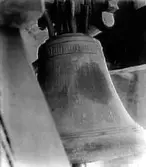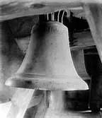Skara. Fornbyn. Ringklocka från Lugnås, nu i Kärråkrastapeln i Skara.
