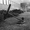 Femte höghuset sett från söder. I förgrunden står skulptören Edvin Öhrströms pelare mitt i en damm.