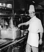 Fransk festival på Nordiska Kompaniet 1955. Kock lagar mat.