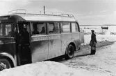 Postomnibusslinjen Karlskrona- Nättrabyhamn-Älmeboda, 5.10.1936. (text på bussen: Karlskrona-Eringsboda-Älmeboda).
