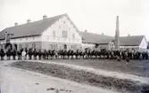 Morgonuppställning utanför stallet på Hjelmsäter.
