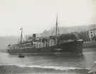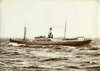 Lastångfartyget Thetis byggd år 1884 på O. A. Brodins varv i Gävle. Text på vykortet som är stämplat i Hull, England "Hälsningar från "Thetis". Till "Fröken Ingrid Lagerholm, Gröndal, Gefle, Sweden".